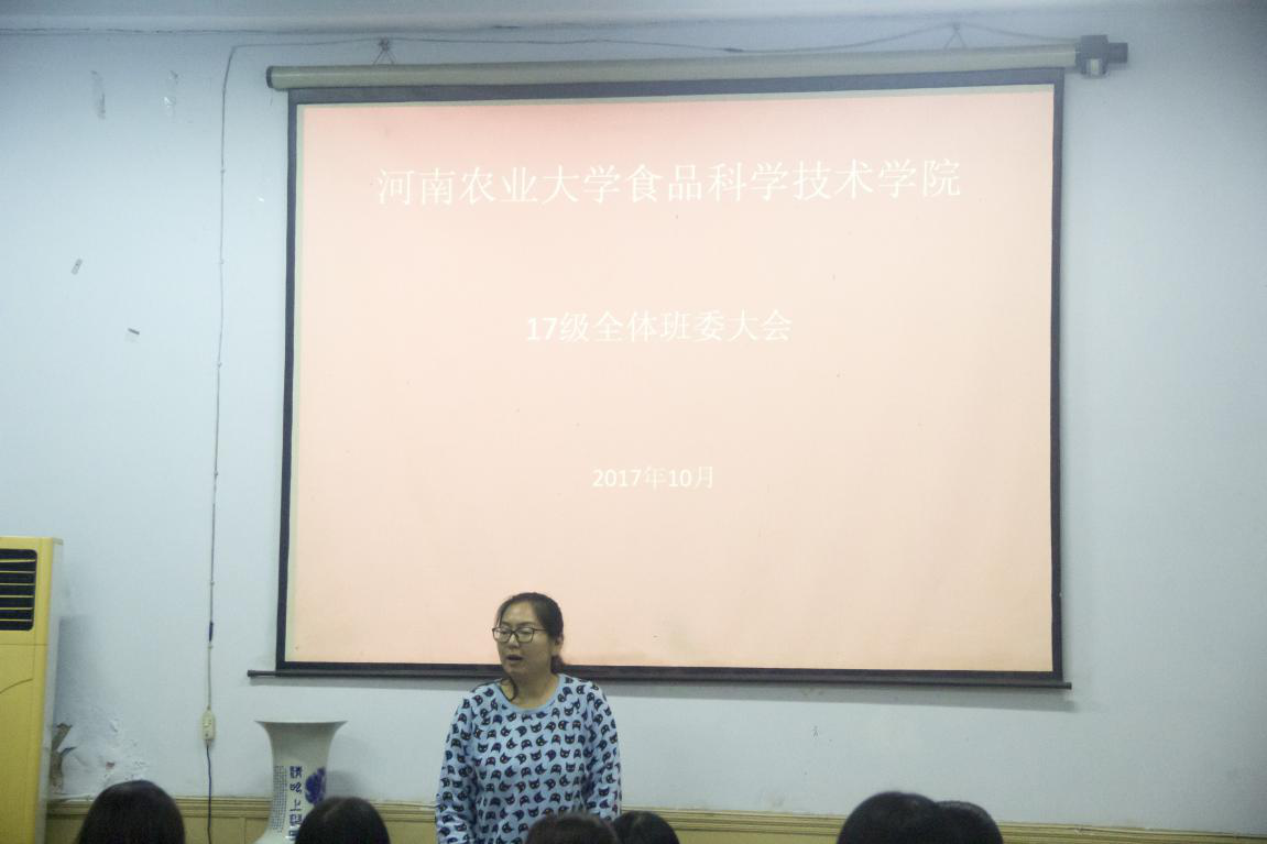 在文化路校区一号楼报告厅召开2017级全体班委大会,院团委书记李蓓蓓出席大会,学院2017级全体班委参加会议。