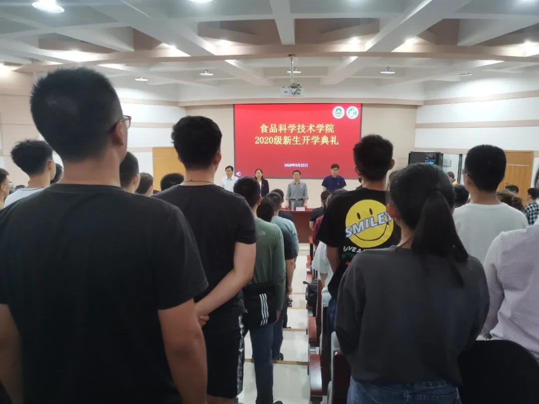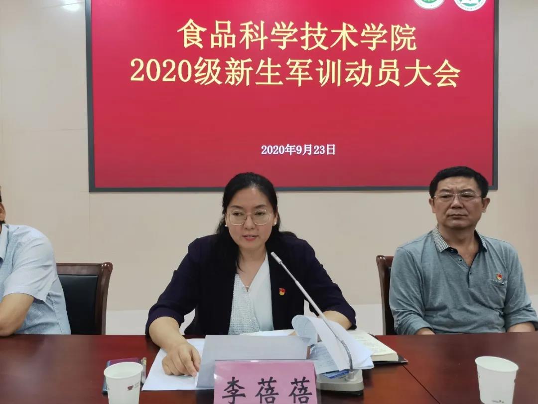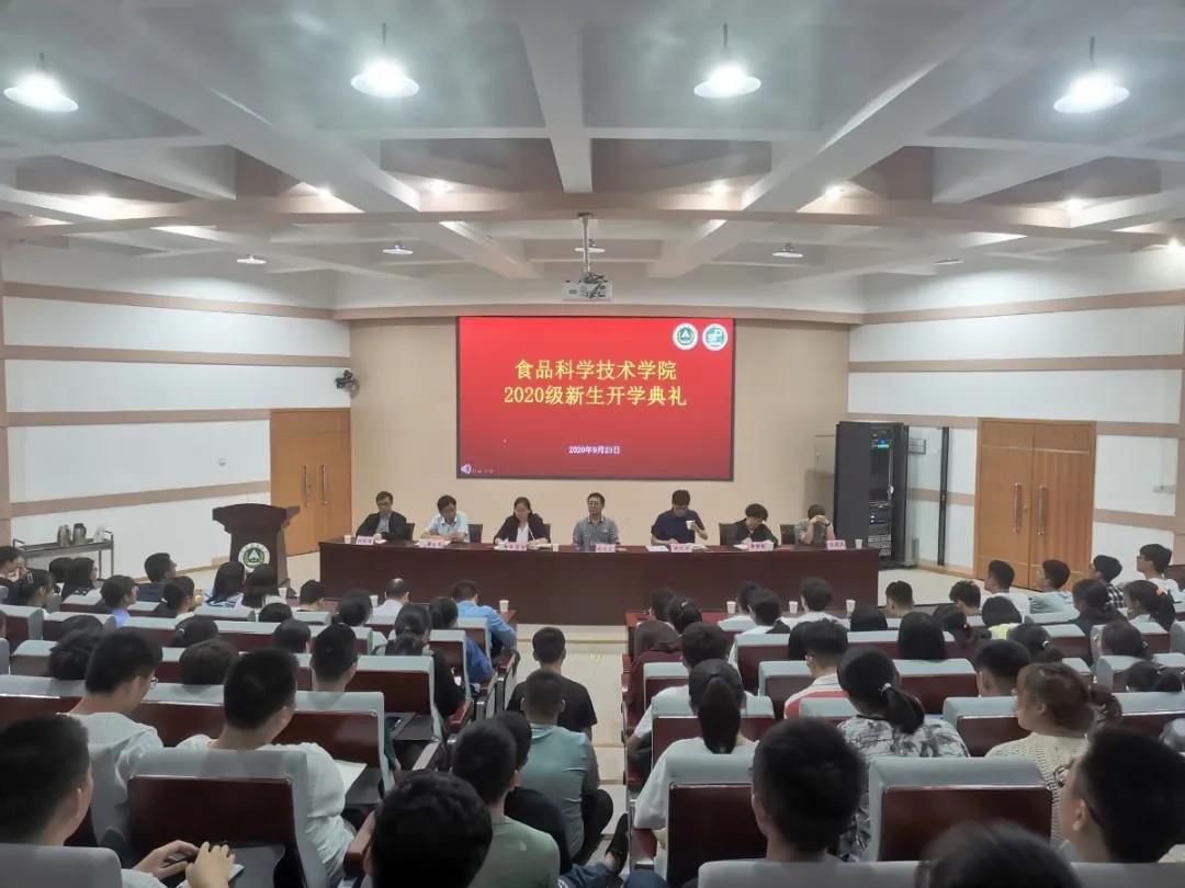 9月23日,免费色情片 于文化路校区第一报告厅召开2020级学生开学典礼暨军训动员大会。院党委书记赵改名、院长黄现青、食品科学与工程系主任李梦琴、食品营养与化学系主任黄忠民、中心实验室主任张建成、院办公室主任谢新华、院团委书记李蓓蓓、副书记杨光、辅导员黄姗姗以及新生班主任出席大会,2020级全体学生参加大会。