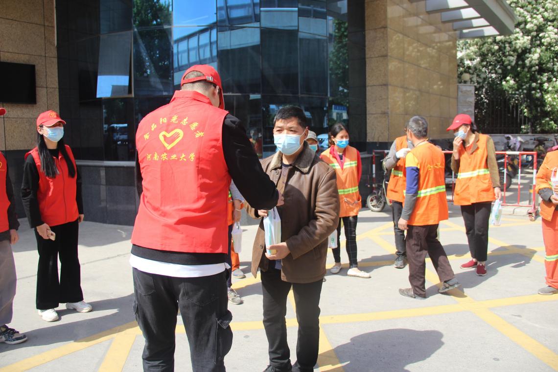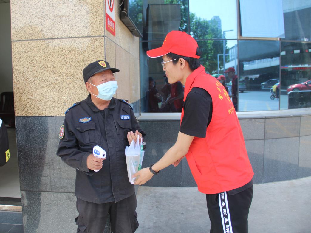 五月是火红的,是属于全体劳动者的。活动中,同学们向门卫、环卫工人和宿舍管理员送去消暑饮品,与他们热情攀谈,询问了解他们工作生活情况,深入感受他们为校园、为同学、为郑州的辛勤付出和劳动精神,对他们坚守岗位、辛勤付出表达由衷的感谢并送上节日的问候与祝福。活动现场热闹温馨,大家脸上都洋溢着喜悦,在场的人都感受到了温暖,感恩之情在一言一语中传递。最后,大家在欢声笑语中一起合影留念。