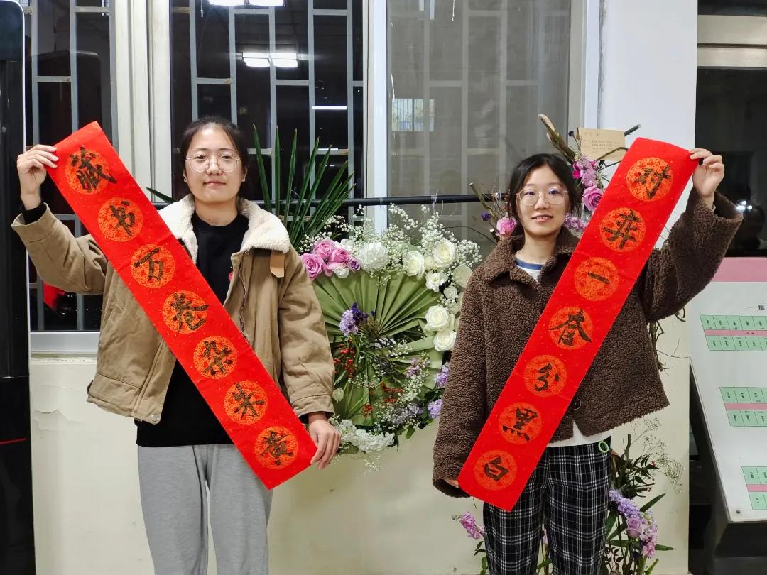 师生为奋力拼搏的考研学子的赞赏,在大家的共同努力下,完成了对联书写。