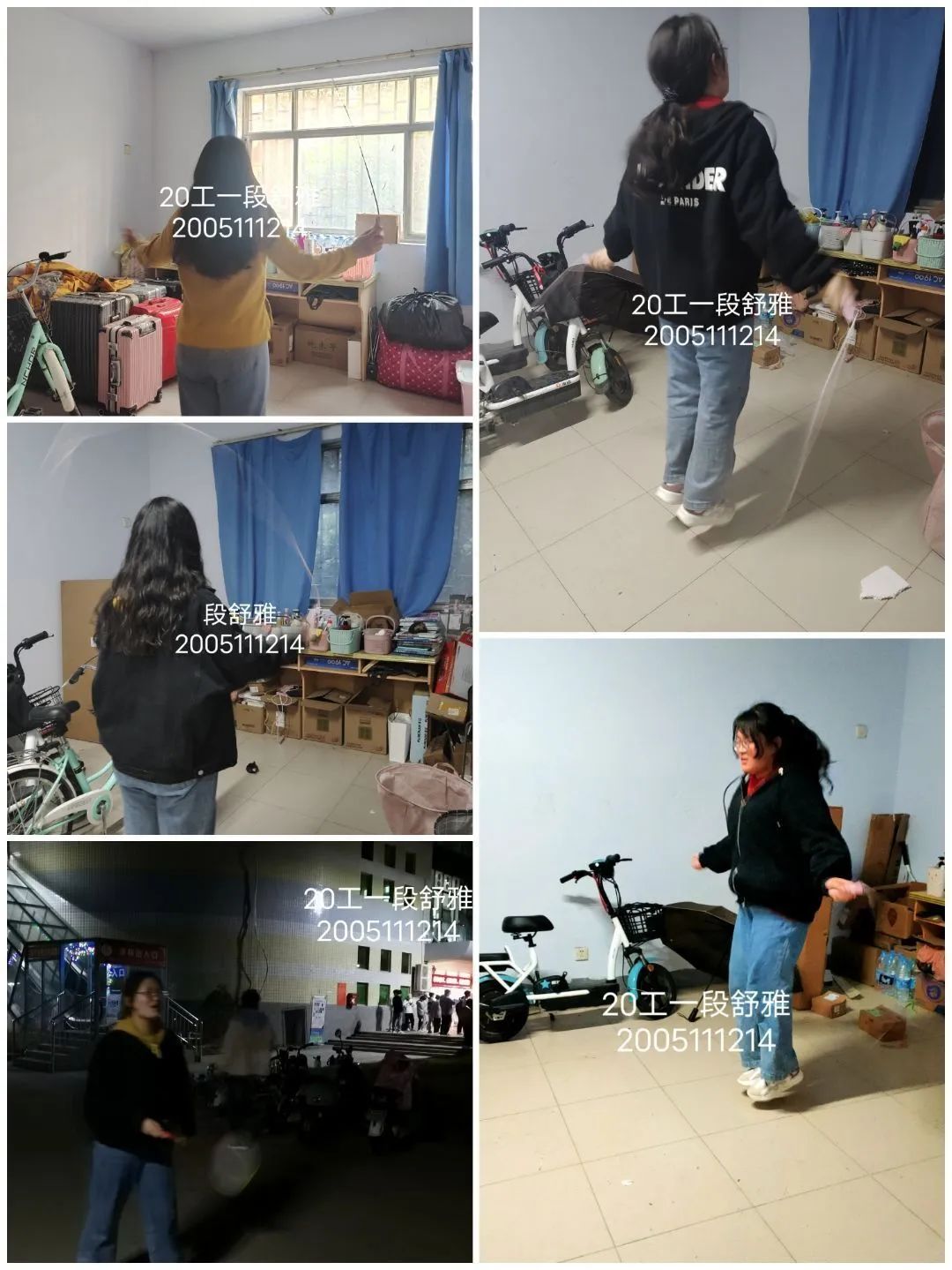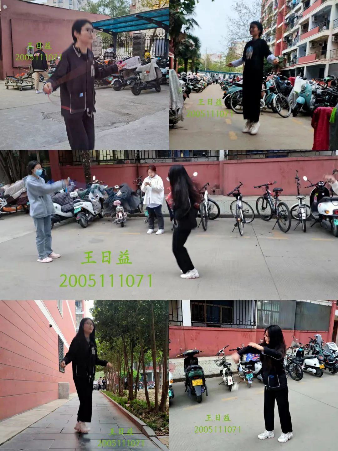 活动的主要形式为健身操、踢毽子、跳绳等可独立或小规模开展的体育健身活动。运动打卡期间,同学们运动的身影出现在校园的各个角落,他们跟随着软件进行健身操、舞蹈等运动,只见同学们翩翩起舞舞蹈跳、阵阵歌声欢快笑、精神饱满春花绽、阳刚气质不非凡。