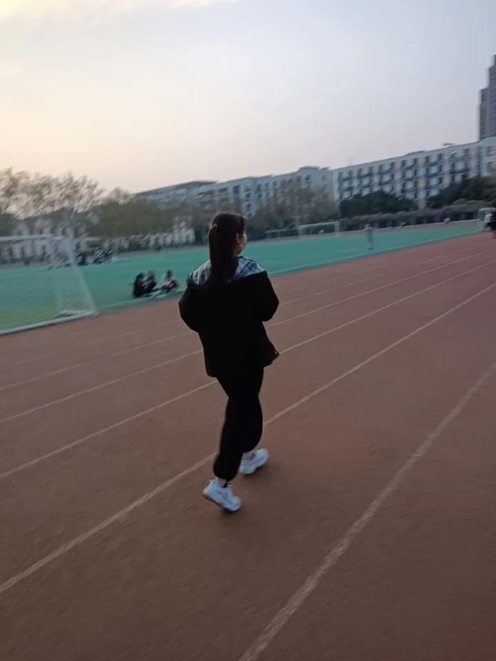 温暖的阳光洒落在奔跑着的同学身上,步幅匀称,步频紧凑,脸上挂着汗珠,身上散着朝气。
