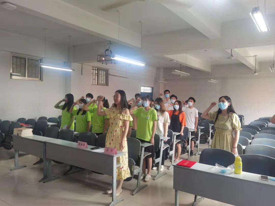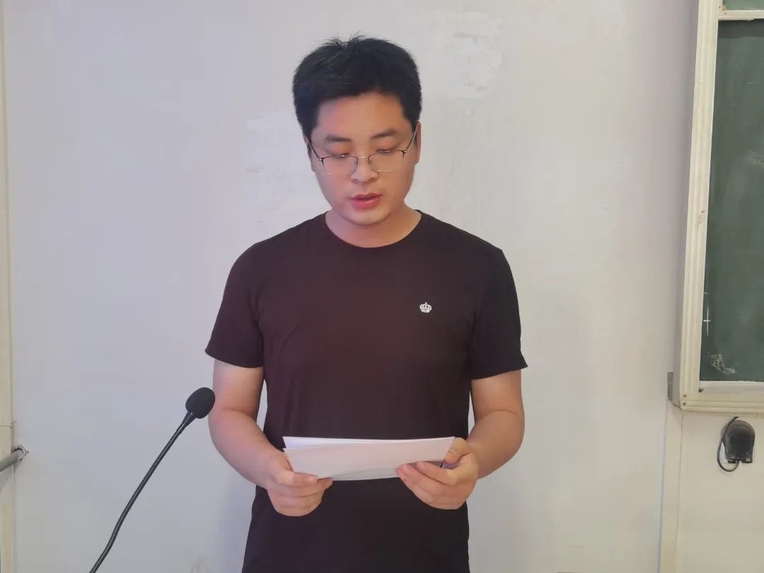 郑一晨作为优秀社会实践代表发言,他分享了自己在进行社会实践时的经验,并针对同学们的部分实践项目给出了建议。最后,与会老师为实践团队代表成员授旗并一同宣誓。