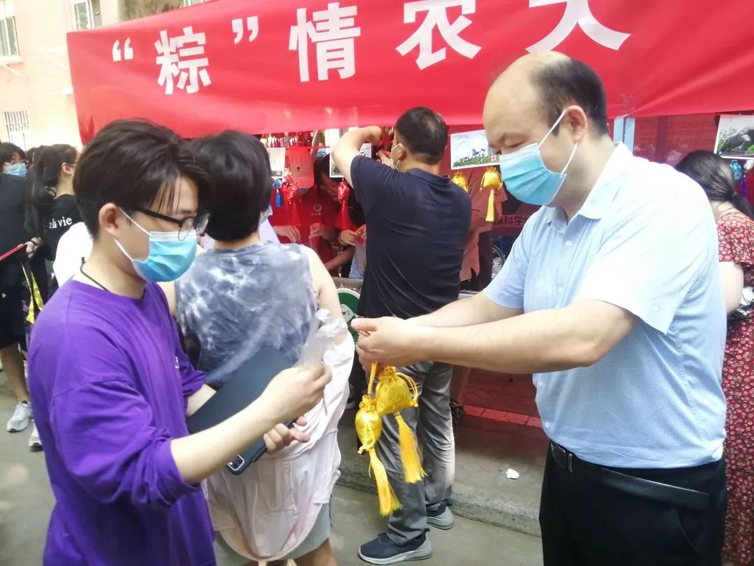 领导班子来到学生中间,送去热乎乎的“奋斗粽”、“幸福粽”和“甜蜜棕”,以及学院领导和老师亲自为毕业生缝制多种不同寓意的艾草香囊,和一张张手写的贺卡。与学生亲切交谈,询问他们毕业安排和生活规划,细语叮咛、谆谆嘱咐。毕业生脸上都洋溢着喜悦和兴奋,真切感受到学校学院的关心和温暖。