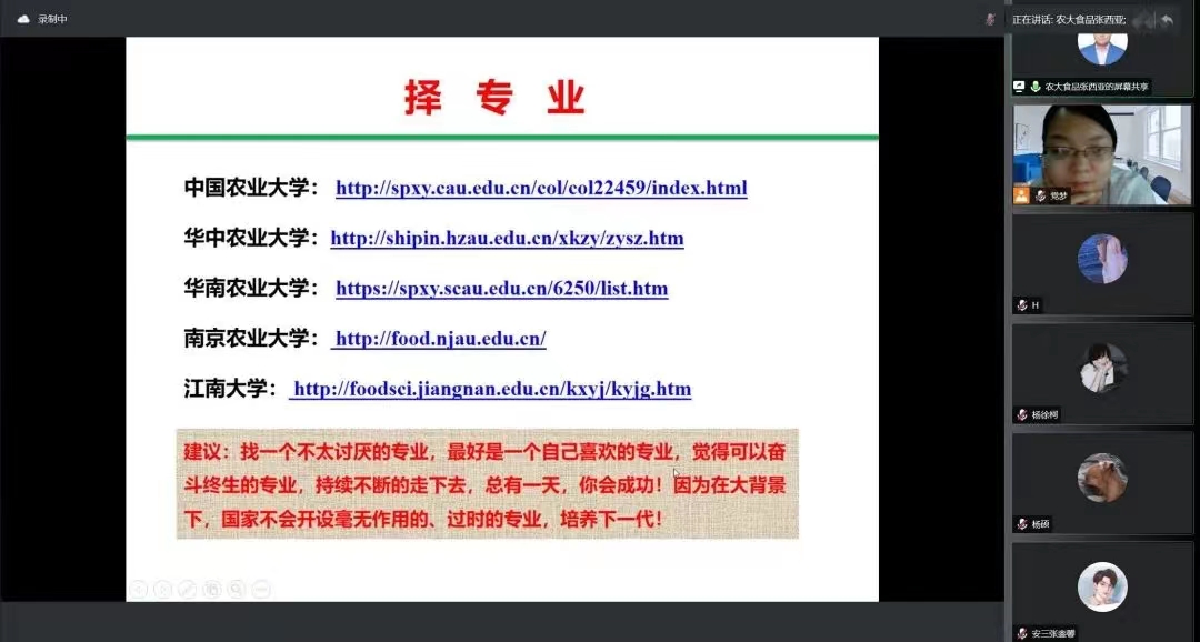 (通讯员 吴贤锟)为给学生提供全面的考研指导,增强学生信心。7月20日,食安系副主任张西亚老师为食品质量与安全专业进行考研指导,该专业19级全体学生参加。
