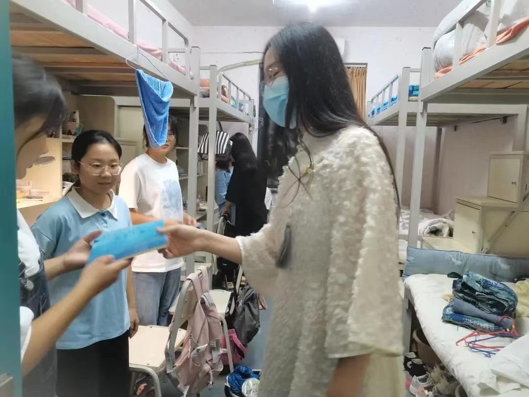 班主任们与新生热情交谈,叮嘱同学们严格遵守学院疫情防控要求,注重个人防护与身体健康,鼓励同学们要多沟通交流,尽早熟悉班级与校园环境。对于宿舍安全问题,班主任提醒同学们安全用电,杜绝使用大功率电器,并保持宿舍卫生,营造一个安全、干净、整洁的宿舍环境。