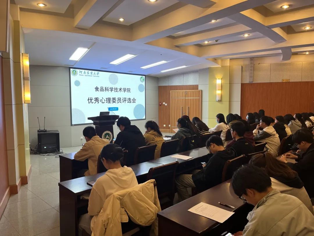 于文化路校区100人报告厅召开优秀心理委员评选会,院各学生组织代表、各班学生代表担任评委,21、22级部分学生参加会议,此次会议由院青年博士兼职辅导员李琳琳主持。