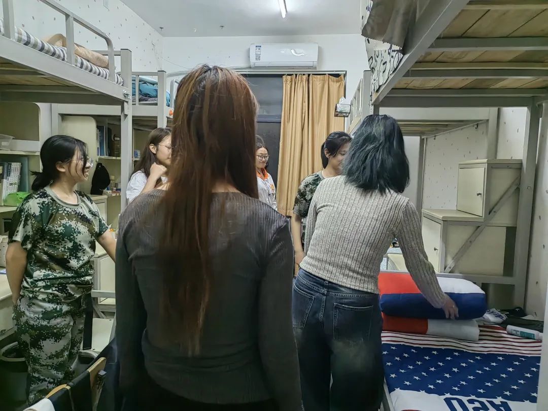 生保部成员按照军训内务标准提出建议,查看了宿舍安全卫生状况,确保无安全隐患问题,并叮嘱同学们一定要注意用电安全,做到人走断电。经过内务的指导后,新生宿舍的整洁度相比之前有了很大提升。