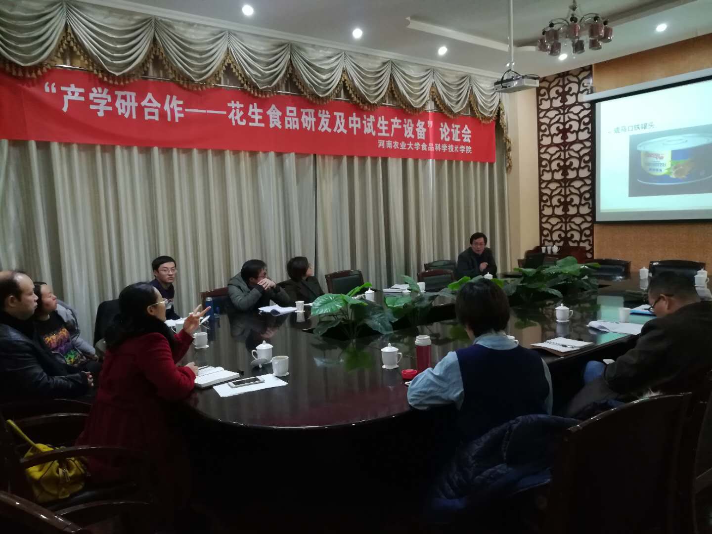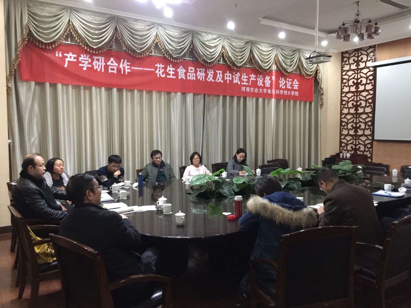 2017年12月10日上午,免费色情片 “花生食品研发”项目组召开“产学研合作——花生食品研发及中试生产设备论证会”。院党委书记杨喜洲、项目负责人王娜副教授、特邀专家张剑老师、课题负责人等参加会议。