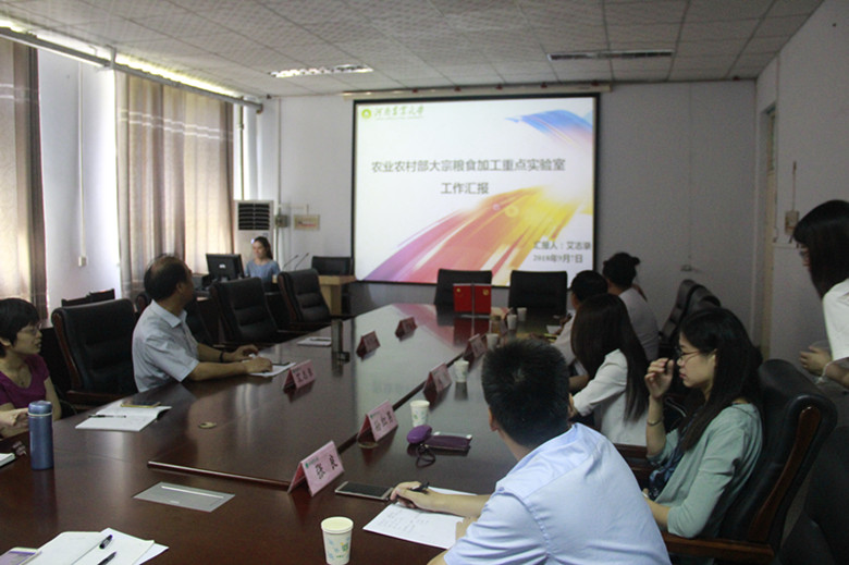 视察期间,戴小枫所长与学院领导及部分老师举行了座谈。戴所长指出食品科学的发展方向和趋势,强调学院的教学应当围绕营养健康方向去调整。他善用形象化的比喻,深入浅出地阐释某些原理,言谈之间妙趣横生,令人折服。会上,学院艾志录老师汇报了农业农村部大宗粮食加工重点实验室的工作。