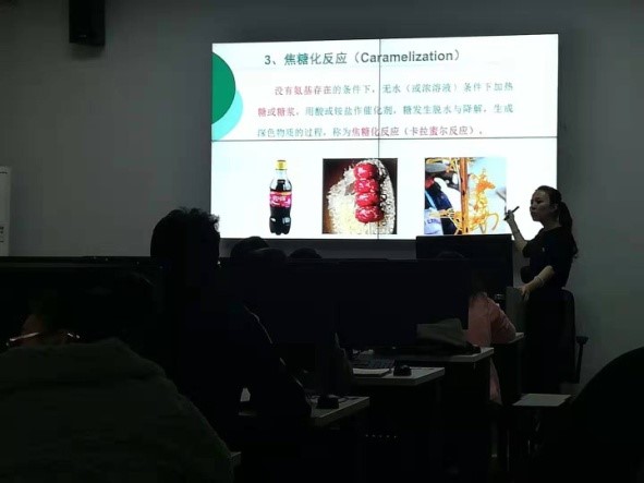 报告会上,黄现青副院长向全体教职工重申了教学工作的重要性,他指出教学是所有学校的核心工作,其根本目的在于使学生获得可以终身发展的能力,各位教师要加强自身学习,提高教学水平以保证良好的教学效果,随后欢迎获得河南省本科高校青年教师课堂教学创新大赛二等奖的赵莉君老师和获得河南省教学技能竞赛高校理科第一名的雷萌萌老师分别为大家进行报告。首先,赵莉君老师就“食品物理加工技术”展开了报告,重点介绍了微波的作用特性、技术特性及应用概况,赵老师仪态端庄,精神饱满,授课内容深入浅出,富启发性,且举例贴合实际引起学生共鸣,并有效利用各种教学媒体使得课堂生动有趣。接着雷萌萌老师就“食品的褐变”开启了另一堂课,雷老师精神饱满,声音洪亮,有感染力,以黑蒜颜色变化机理探讨为目标,通过结合生活实际中常见的食品褐变现象,如苹果、梨等水果以及莲藕、土豆等蔬菜切开后褐变,使学生理解并学会应用食品的褐变,课堂气氛活跃,互动效果佳。