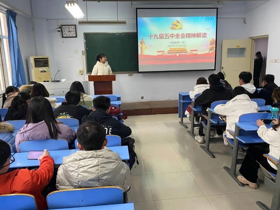 活动期间,各班团组织以班会、线上会议等形式进行党的十九届五中全会原文研读活动。11月24日,免费色情片