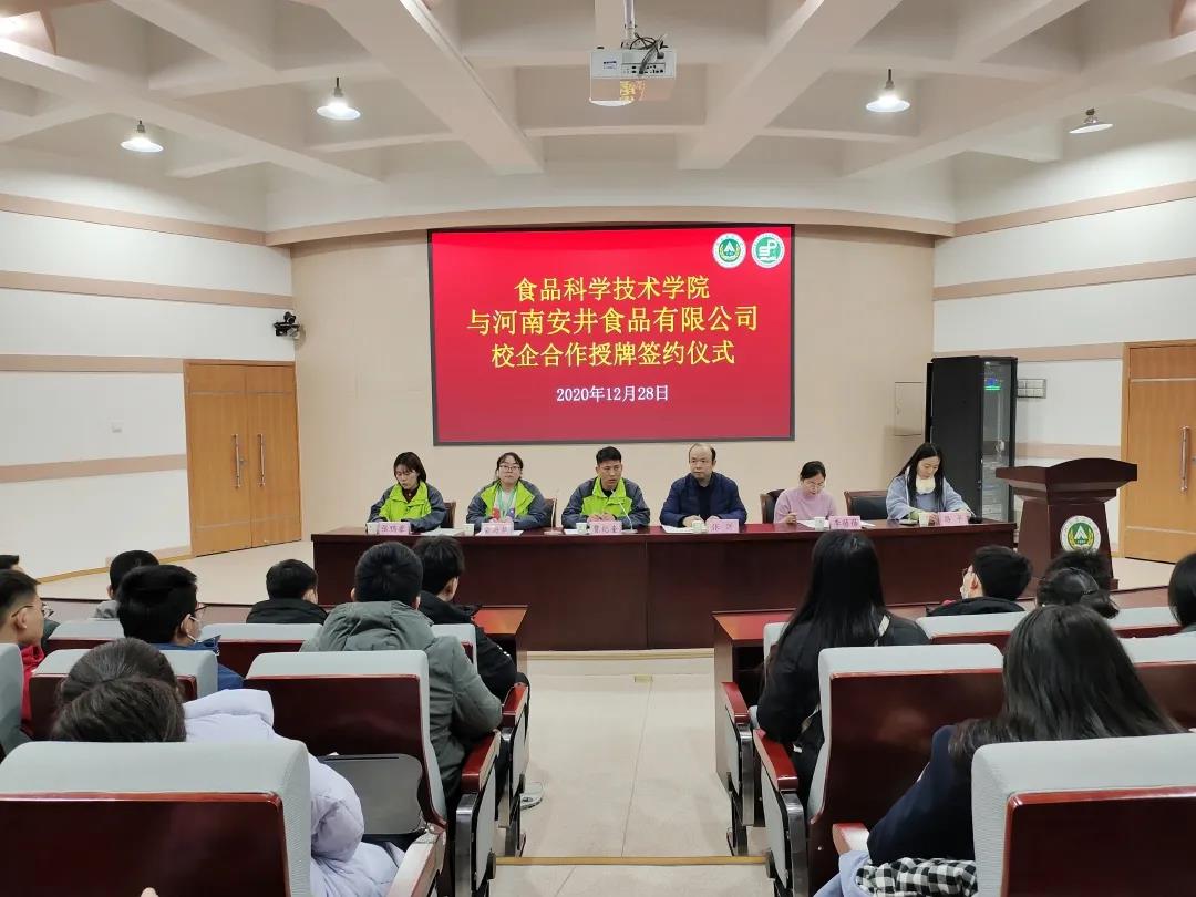 于文化路校区第一报告厅举办与河南安井食品有限公司校企合作签约授牌仪式暨2021届毕业实习动员会,副院长张剑、院党委副书记李蓓蓓、安井公司人资课课长贾纪奎、人事专员桑海艳、人事专员张鸭蒙出席会议,免费色情片