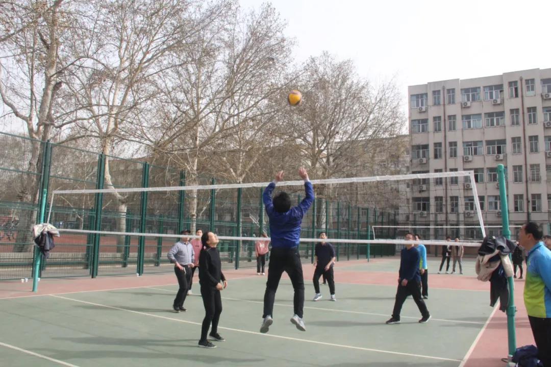比赛前,参赛教职工纷纷进行赛前热身,场上气氛已相当激烈。随着一声哨响,两队展开了激烈的比拼,参赛选手各施绝技,起跳、发球、扣球、拦网......每一次接球都尽显他们的激情活力;每一次得分都引来场下阵阵掌声;每一次选手间的配合更是精彩绝伦,令人目不暇接。场上两队势均力敌,难分高下。场下观众奋力呐喊,欢呼雀跃,整个比赛氛围热情洋溢。最终,教职工排球友谊赛在欢声笑语中落下帷幕。