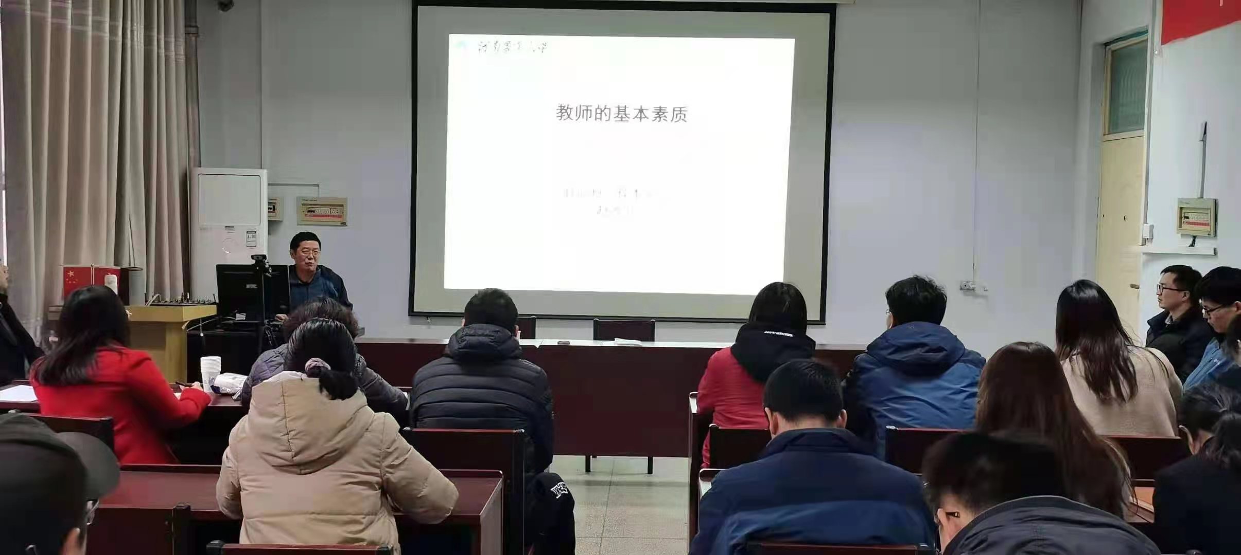 3月18日下午,在文化路校区17号楼405会议室,院党委书记赵改名为全院教职工做了以“强化基本素养,迎接建党百年”为主题的党课,院领导黄现青、李蓓蓓、张剑、谢新华参加。