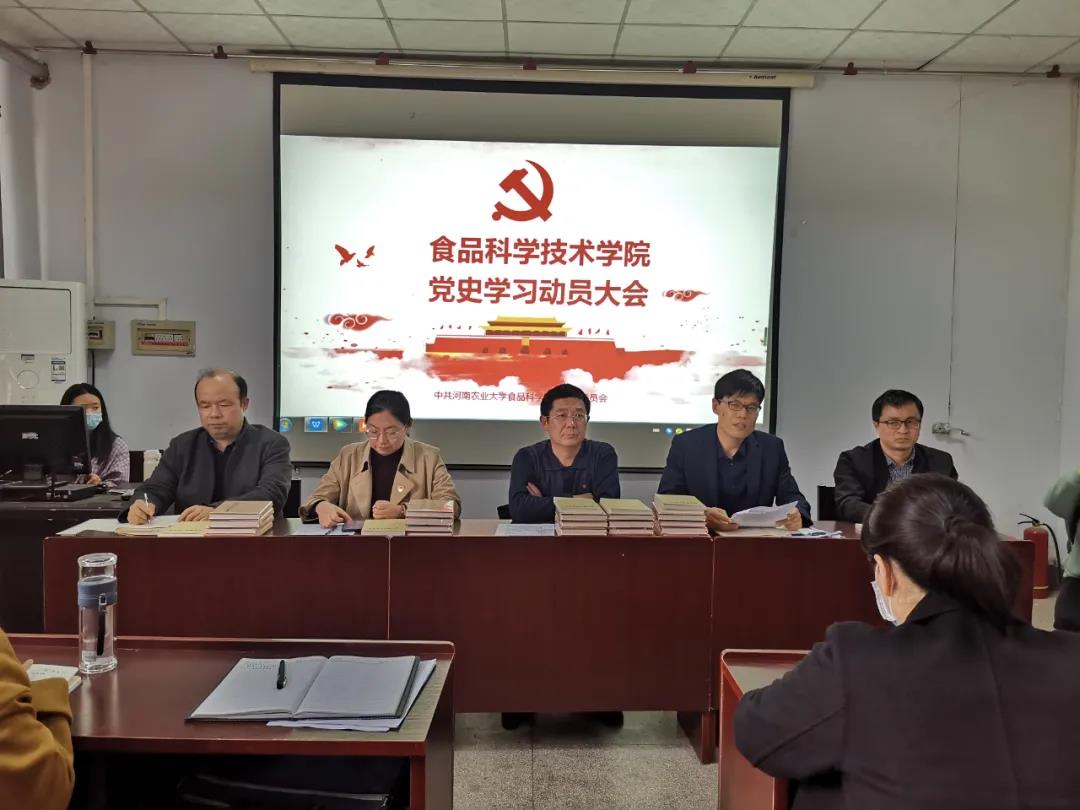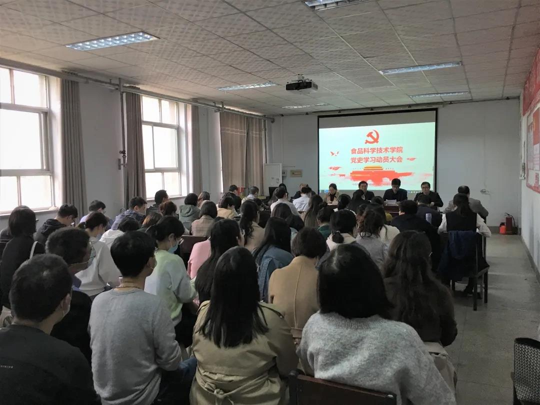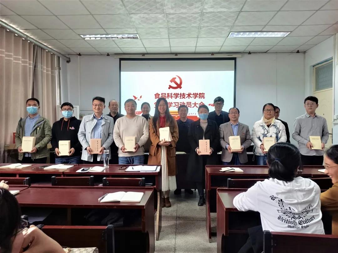 委员会关于开展党史学习教育的实施方案》,学院领导为各党支部书记发放《毛泽东选集》(1-4卷)《论中国共产党历史》等党史学习书籍,全体党员共同观看党史教育视频,全体党员一起重温入党誓词,食品营养与化学系党支部书记高晓平领誓。