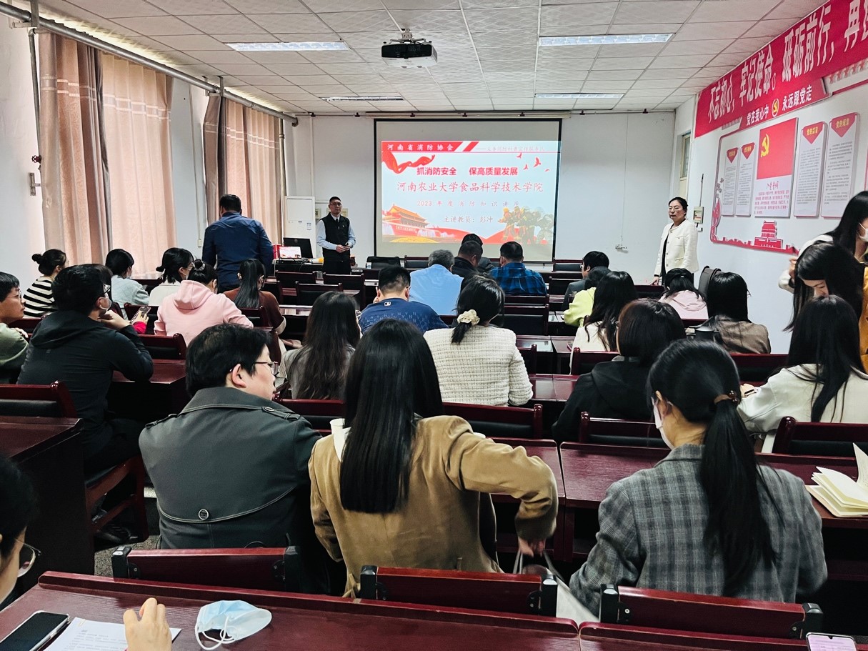讲座开始,李蓓蓓书记对彭教官做了介绍,并且强调了宣传消防安全工作的重要性,要求全体教工认真学习,提高安全防范意识,为学院发展保驾护航。彭教官首先为大家列举了近期发生的因缺乏相关消防知识而引发的火灾严重后果,发人深省。然后,教官向大家讲解了基本的消防知识,包括火灾发生的原因、火灾的预防、火场逃生基本知识、常见灭火方法、灭火器的分类及正确使用方法等内容。此外,彭教官还重点讲解了与我们生活密切相关的安全隐患,如高楼层居住安全、家电使用安全、小区电动车充电安全等。讲解的过程中,彭教官从理论知识、火灾应对正反实例方面教育大家必须提高消防安全意识,提升消防安全应对能力。