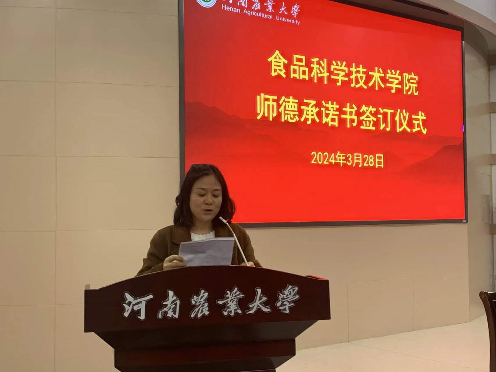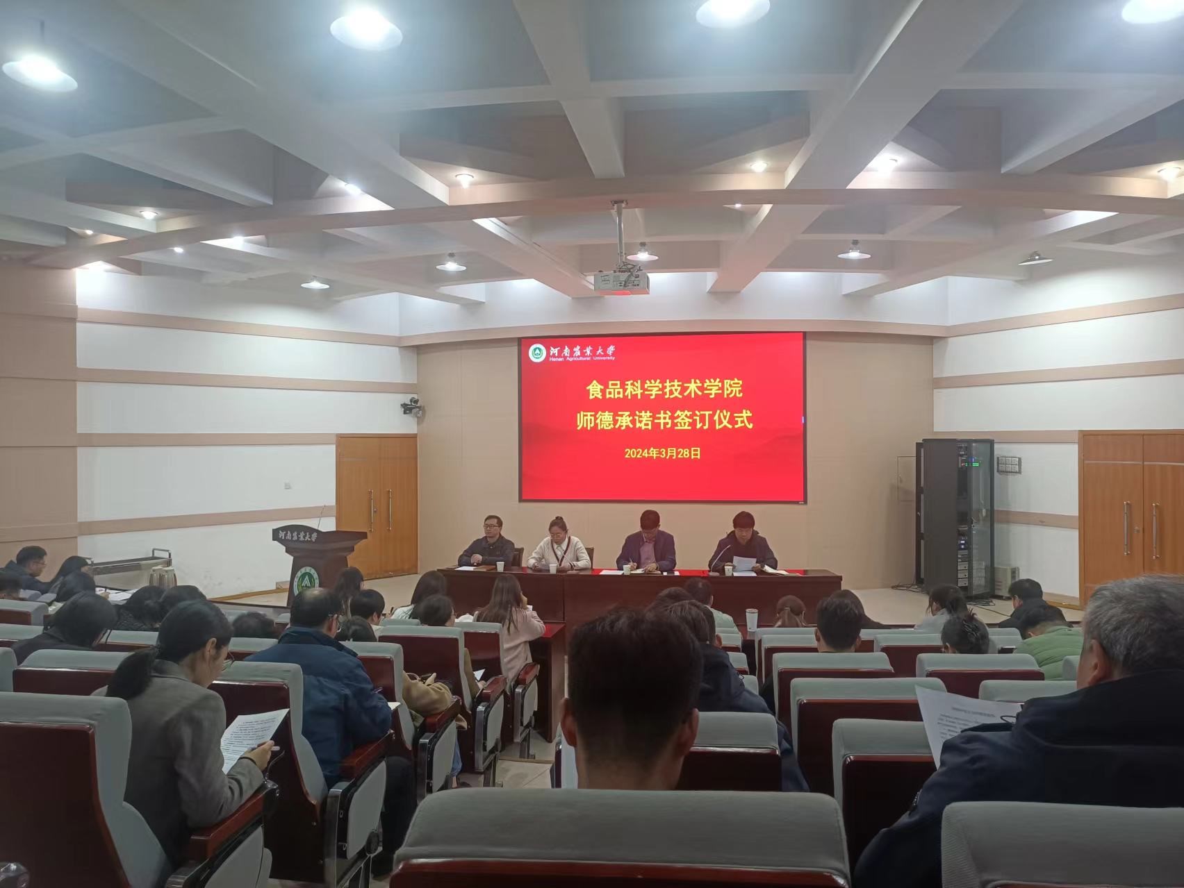 于2024年3月28日下午在文化路校区300人报告厅开展了师德师风教育暨师德承诺书签订仪式,学院领导班子成员及全体教职工参加会议,会议由教学院长张剑主持。