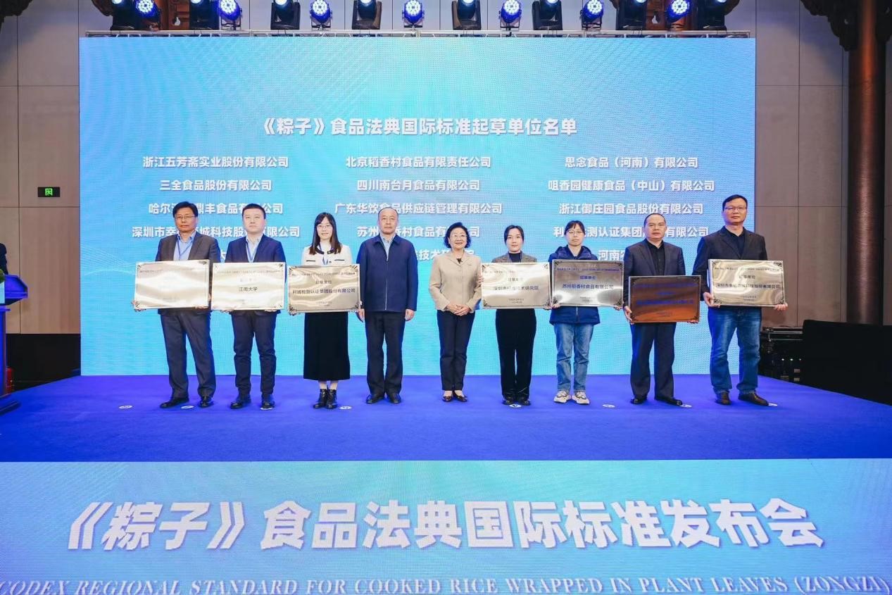 《粽子》食品法典国际标准是我国在国际食品法典委员会(CAC)提出并主导组织制定的中国传统食品国际标准,于2023年12月在联合国粮农组织和世界卫生组织共同举办的国际食品法典委员会第46届会议上正式获批发布,标准代号为CXS 355R-2023。商务部流通业发展司副司长赵涛、国家食品安全评估中心副主任樊永祥、农业农村部农产品质量安全中心总农艺师孔巍、中国商业联合会副会长张丽君等有关领导以及来自五芳斋、北京稻香村、哈尔滨老鼎丰、思念食品、三全食品等企业及免费色情片 、江南大学起草单位的代表参加了本次发布会,免费色情片 二级教授、中国食品工业协会粽子行业委员会专家委员黄忠民全程参与了该项国际标准的起草工作并共同见证全球首个中国传统节令食品国际标准的发布。