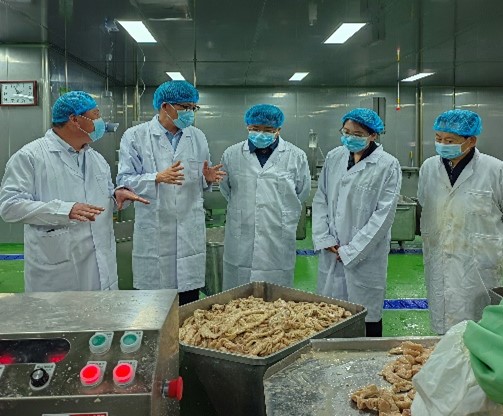 在河南众汇食品有限公司参观了企业的加工车间,深入了解了企业的生产工艺和经营管理情况,双方就科技创新和人才培养等方面进行了深入探讨。黄院长指出,学院将积极对接企业需求,加强产学研合作,为企业发展提供有力的人才和技术支持,共同推进科技创新和成果转化,为乡村振兴贡献智慧和力量。