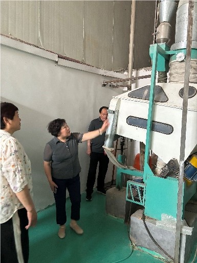 随后大家又前往威昂农产品加工有限公司,在董事长林卡的引导下,李教授一行仔细查看了仓库中彩麦原料情况、制粉生产设备,车间情况等,并详细座谈和考察。服务团和当地领导详细询问了生产过程中的技术难题和销售情况及企业需求。李梦琴教授表示,彩色小麦作为一种新兴功能强化型的特色小麦,其独特的营养价值和市场潜力受到广泛关注,其种植技术的推广和产品市场开发对于提升农民收入和地方经济发展具有重要意义。针对上蔡县威昂农产品加工有限公司目前生产状况,提出了充分利用现有设备条件,生产普通小麦面粉和彩色小麦面粉的间隔式生产模式,更新经营理念等改进建议和措施,并建立物流专用通道、净化厂区环境,提高员工食品安全卫生,强化生产效益等。