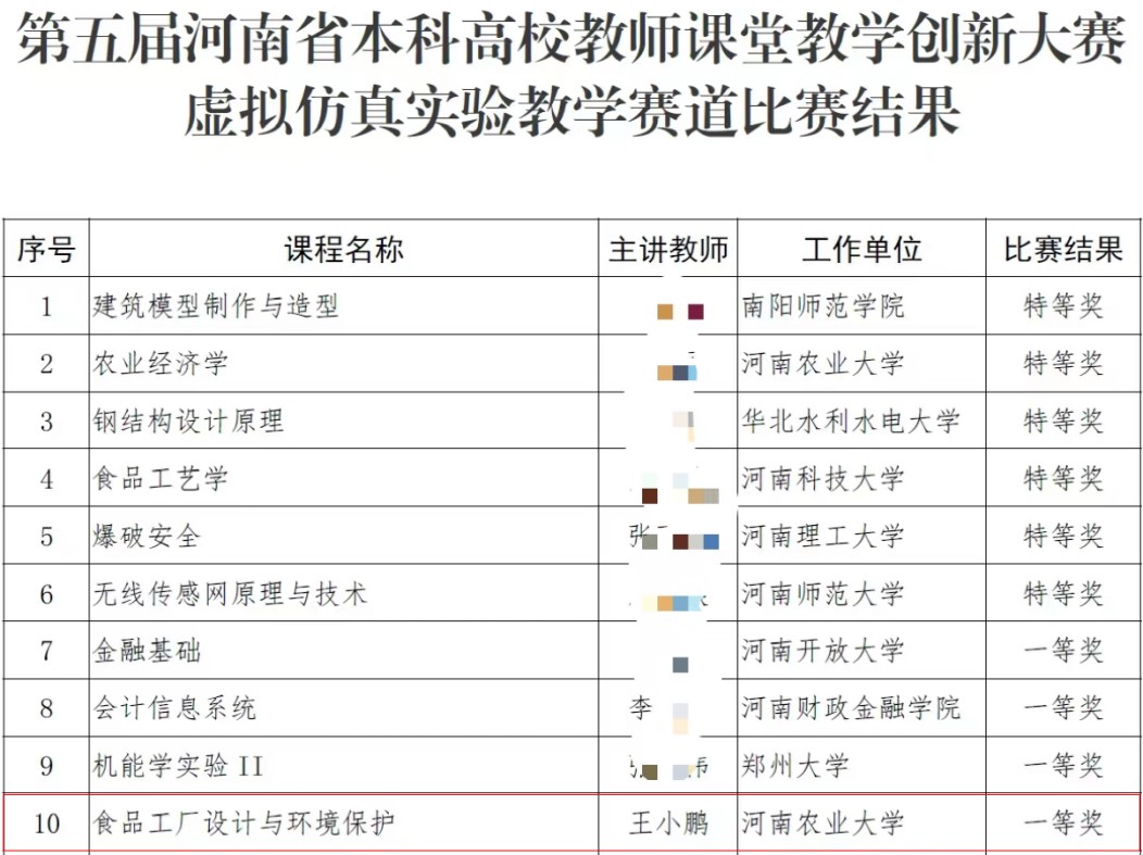 王小鹏副教授代表《食品工厂设计与环境保护》课程团队,作了题为“通过虚拟仿真实验链接融合 构建课程教学新体系”的创新成果汇报。课程团队提出的“依托虚拟仿真实验,项目制重构课程内容、多维度融合教学资源、沉浸式打造实验课堂”的创新理念,受到了复赛和决赛评委的一致肯定。