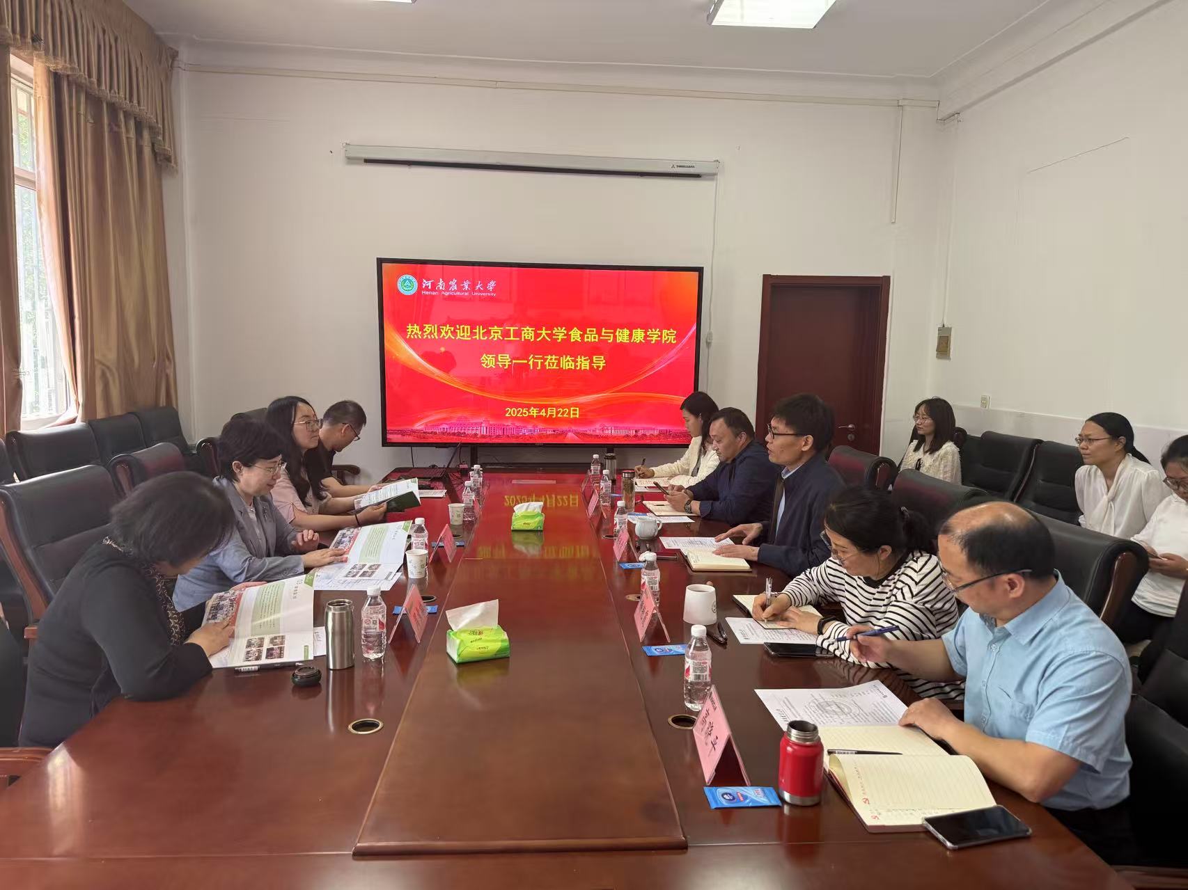 院长黄现青、食品科学与工程系主任柳艳霞、食品质量与安全系主任索标、食品营养与健康系主任高晓平、院办公室主任徐丽娜参加了交流会。会议由院长黄现青主持。
