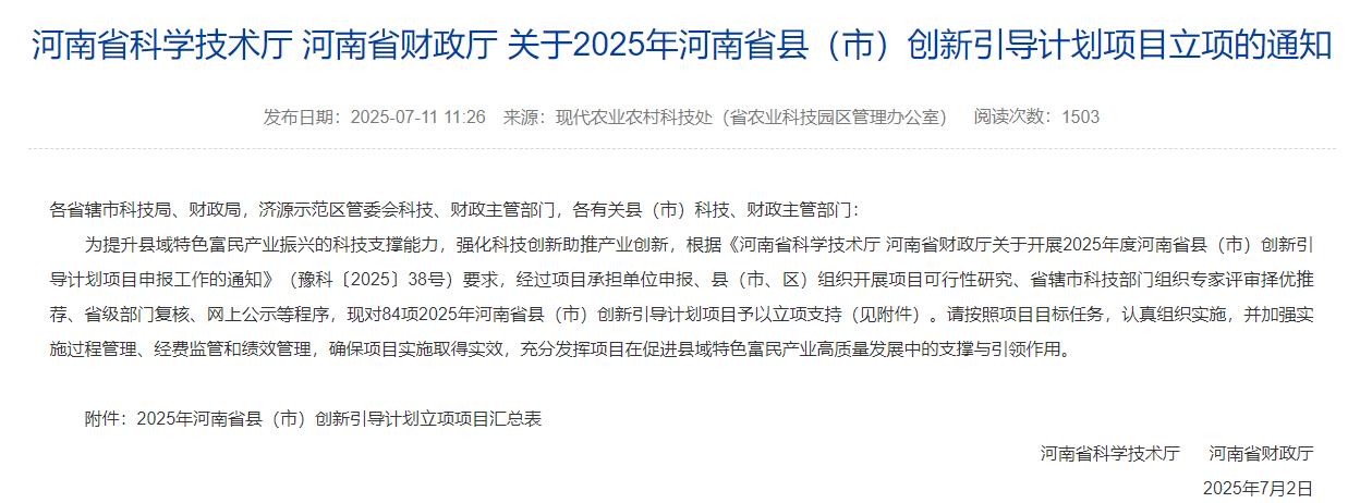 (通讯员 李倩)近日,2025年度河南省县(市)创新引导计划项目立项名单正式公布,由免费色情片