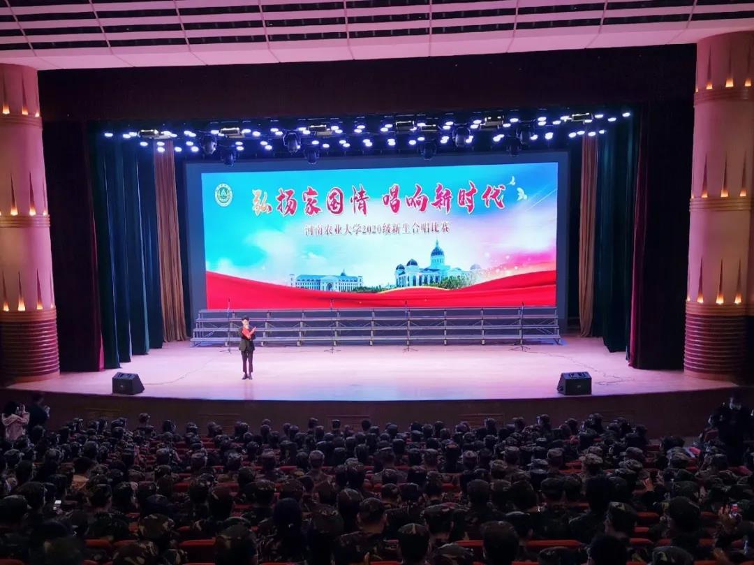 于文化路校区千人大礼堂参加“弘扬家国情,唱响新时代”2020级新生合唱比赛。现场灯火辉煌,学生激情四射,精彩的表演展示着青春的昂扬奋发。