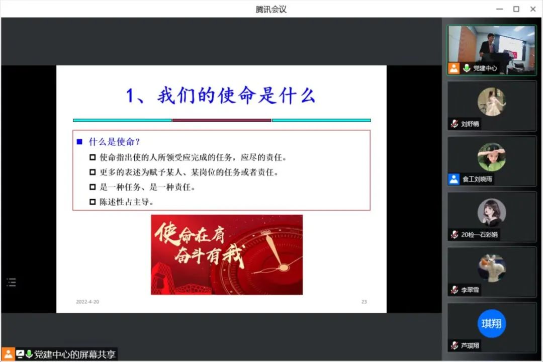 于文化路校区一百人报告厅开展“大食物观下食品人的使命与担当”主题理论学习。院长黄现青、院团委书记路平、各学生党支部宣传委员、组织委员和部分五十一期入党积极分子参加线下会议。全体党员、部分入党积极分子通过腾讯会议以线上形式参会,会议由院团委书记路平主持。