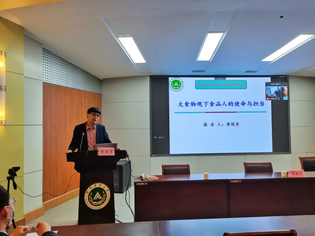 会议围绕习近平总书记在看望参加全国政协十三届五次会议的农业界、社会福利和社会保障界委员时提出的大食物观展开。黄现青院长做演讲,他首先以正确理解大食物观,大食物观下食品人的使命与担当为报告提纲,向大家介绍了何谓食物,食品与食物的异同,大食物观里的辩证关系。随后黄现青院长为大家讲解作为食品人的使命与担当是什么,如何才能更好的践行习近平总书记的嘱托。他强调要以德为先,一切都要建立在有良好品德的前提之下,劝诫大家更要做到不忘初心牢记使命。